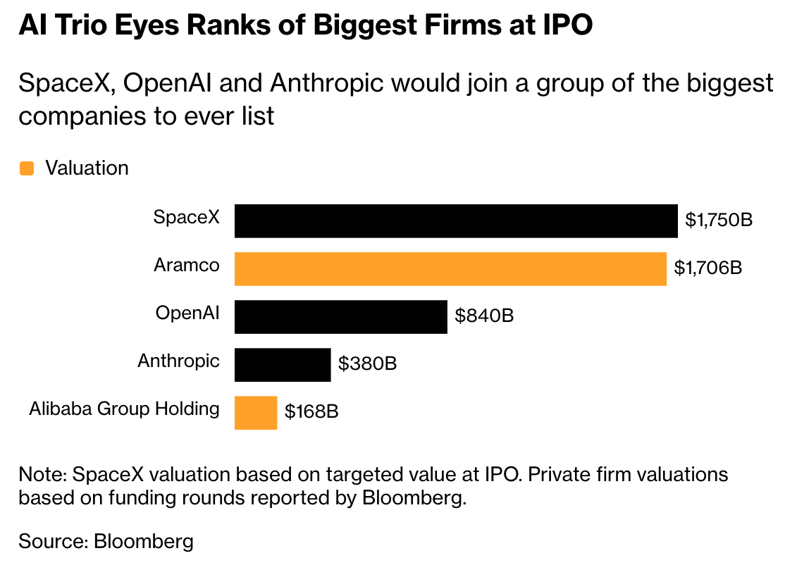 SpaceX, OpenAI Potential Blockbuster IPOs Lure Investors Into Murky Deals (Bloomberg, 4 minute read)